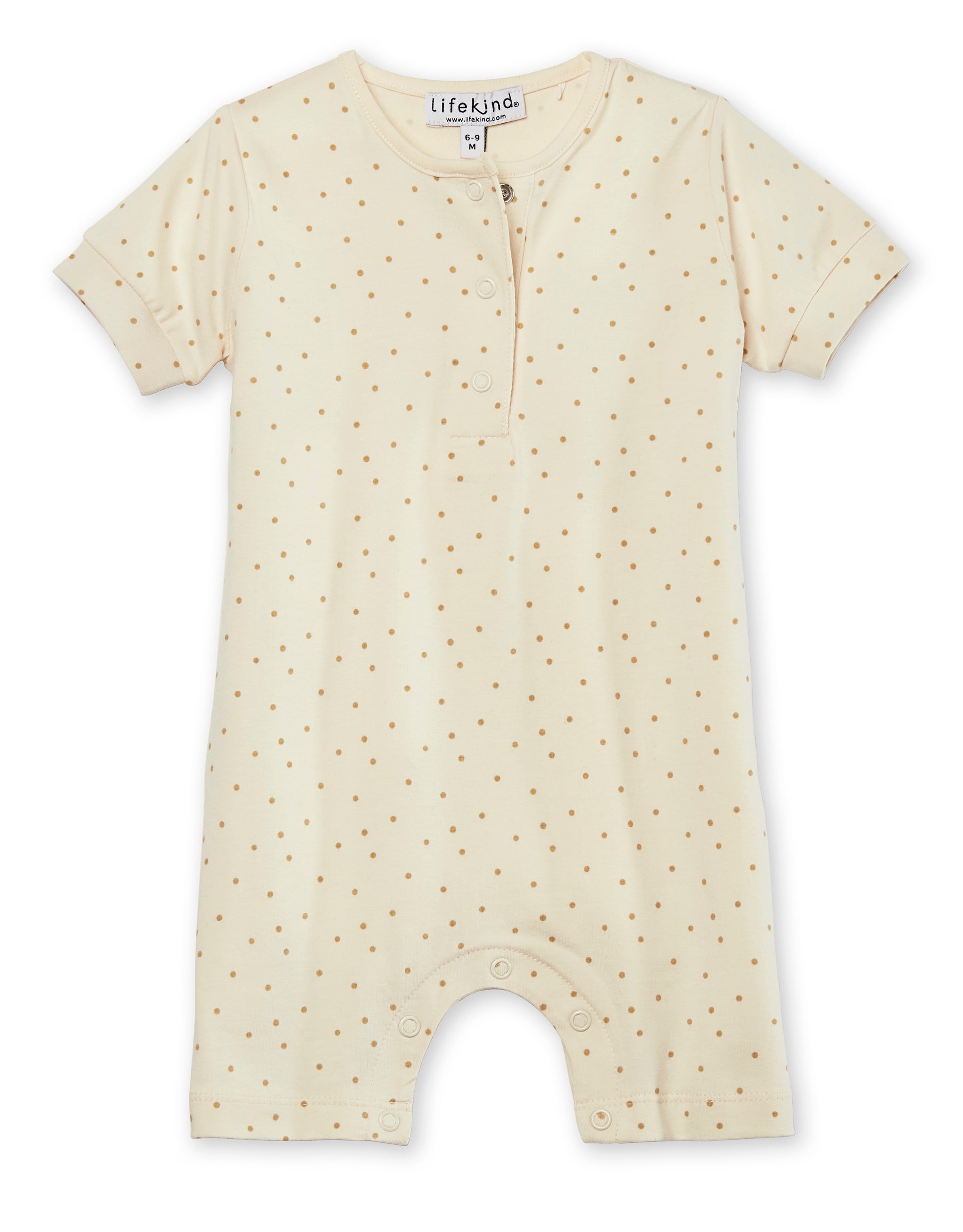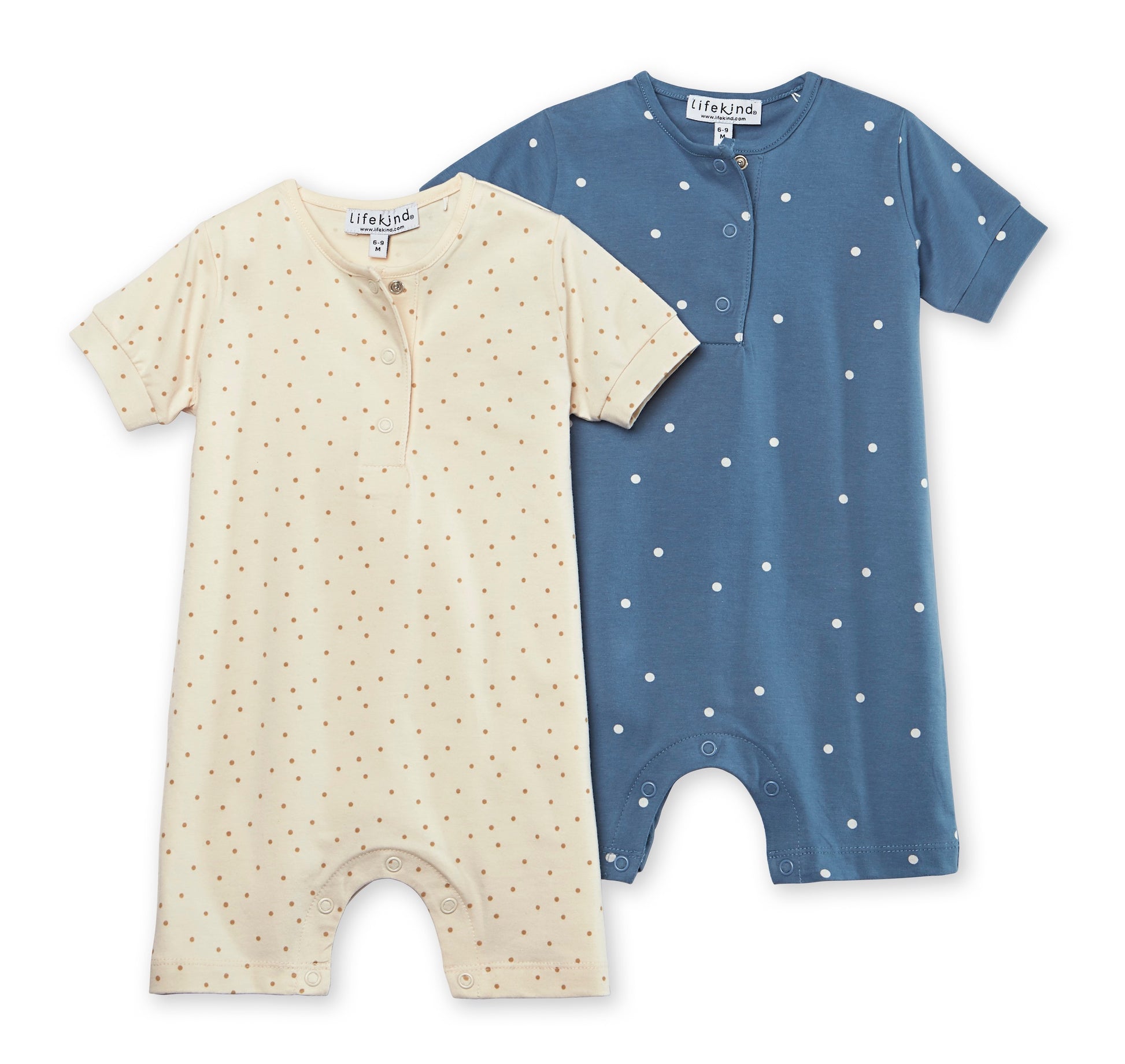 The perfect, go-to, go anywhere certified organic romper in classic all- over-print designs. Easy on, easy off, quick diaper changes (and comfy to boot)